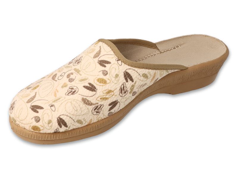 - Befado Ania Полски висококачествени дамски чехли на лека платформа, в бежов цвят с ефектен флорален принт.