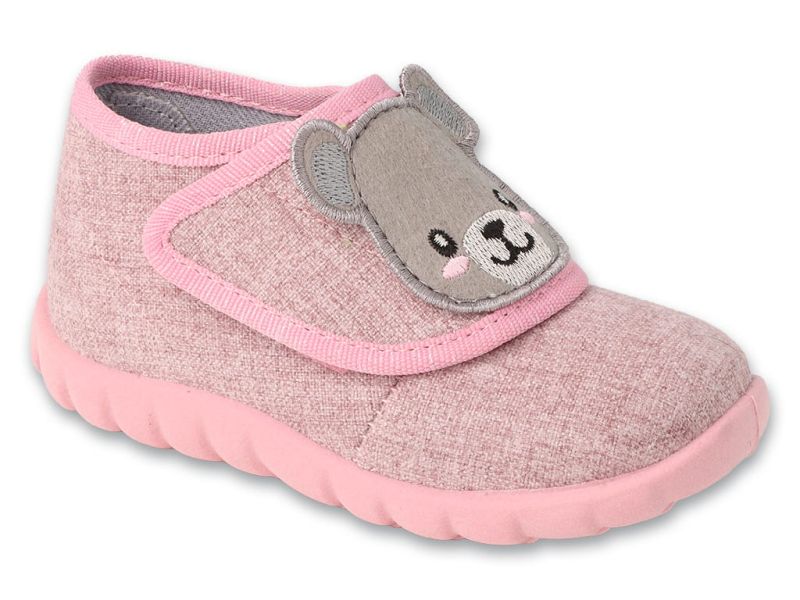 Затварянето с удобна велкро лепенка прави обуването лесно и сигурно. Розовият дизайн със сладки мечета добавя чар и нежност, превръщайки тези пантофки в любим чифт за всяко бебе.