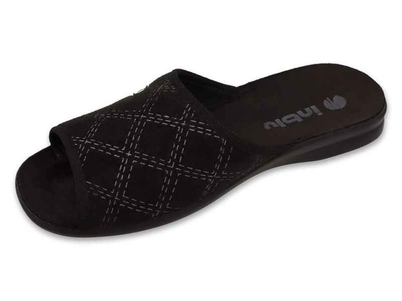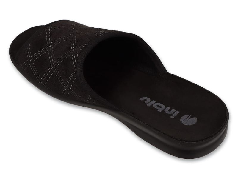 Елегантни и удобни домашни чехли Inblu 155M003 в черно. С лека и гъвкава подметка, идеални за ежедневен комфорт у дома, работа от вкъщи или за хора с чувствителни крака. Луксозен дизайн за максимално удобство.