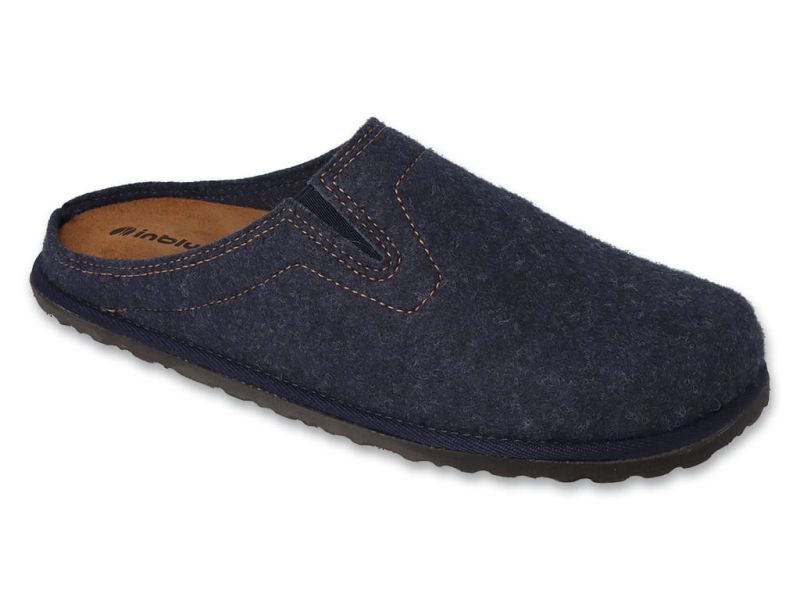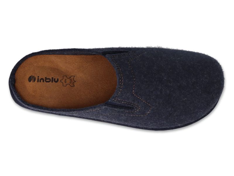 Домашните чехли италианската марка Inblu са подходящи за хора от всички възрасти. Изработени са от високачествен мек филц с издържливост при дълга употреба. Ходилото е анатомично, не се пързаля и не се мокри при стъпване на влажни повърхности. Стелката е от естествена кожа, която допълва комфорта при носене.