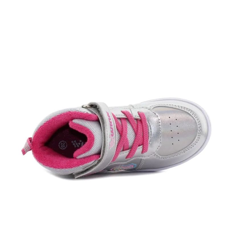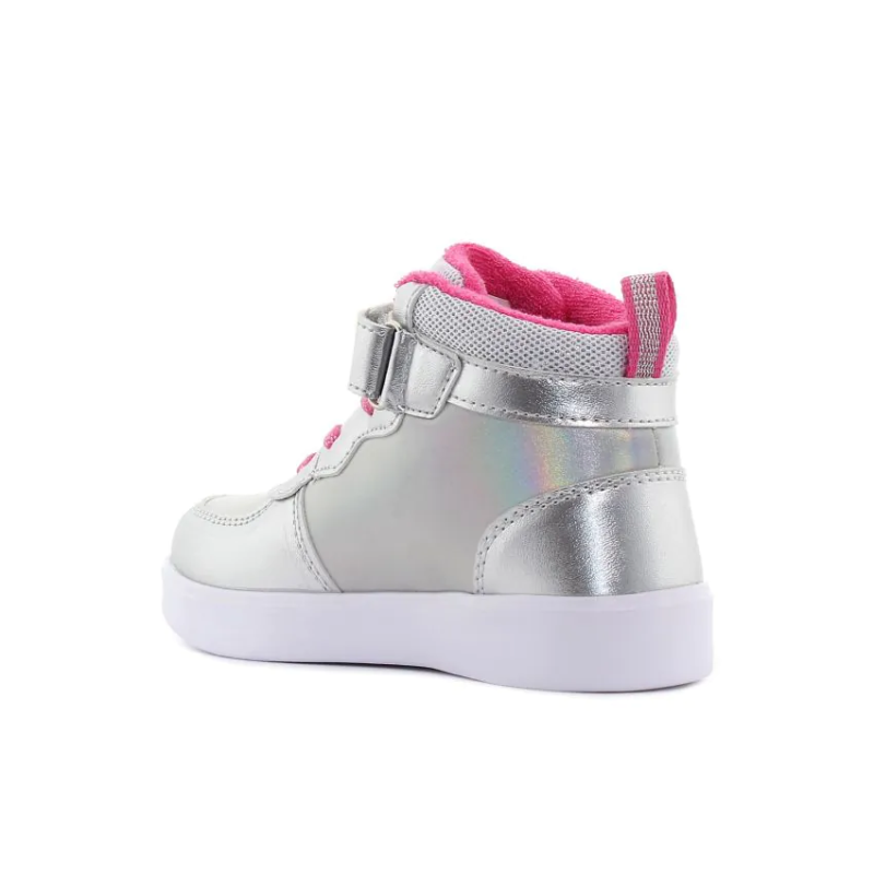 WINK RHEA STAR LED са модерни детски светещи сникърси, създадени за момичета, които обичат блясък, комфорт и атрактивен дизайн. Моделът впечатлява със своя сребърен металически ефект, вградените LED светлини в подметката и удобната мемори стелка, която осигурява мекота при всяка стъпка.