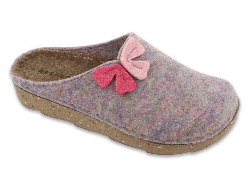 Луксозните анатомични домашни чехли Befado Home & Go 155D170 са изработени от топъл, дишащ светлосив филц и украсени с нежна розова декорация. Моделът осигурява лекота, стабилност и комфорт благодарение на анатомичната подметка и антихлъзгащото ходило. Перфектен избор за уют и удобство у дома.