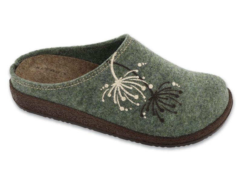 Луксозните анатомични домашни чехли Befado Home & Go 155D189 са изработени от топъл, дишащ резедав филц и украсени с ефектна флорална декорация. Моделът осигурява лекота, стабилност и комфорт благодарение на анатомичната подметка и антихлъзгащото ходило. Перфектен избор за уют и удобство у дома.