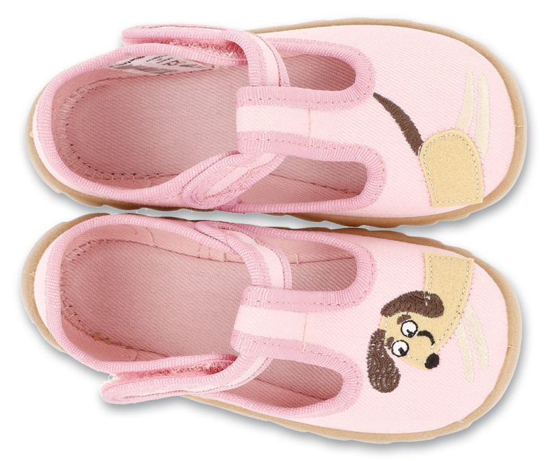 Затварянето с удобна велкро лепенка прави обуването лесно и сигурно. Розовият дизайн със сладки кученца добавя чар и нежност, превръщайки тези пантофки в любим чифт за всяко бебе.