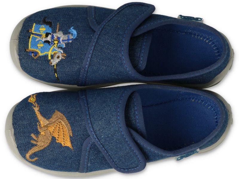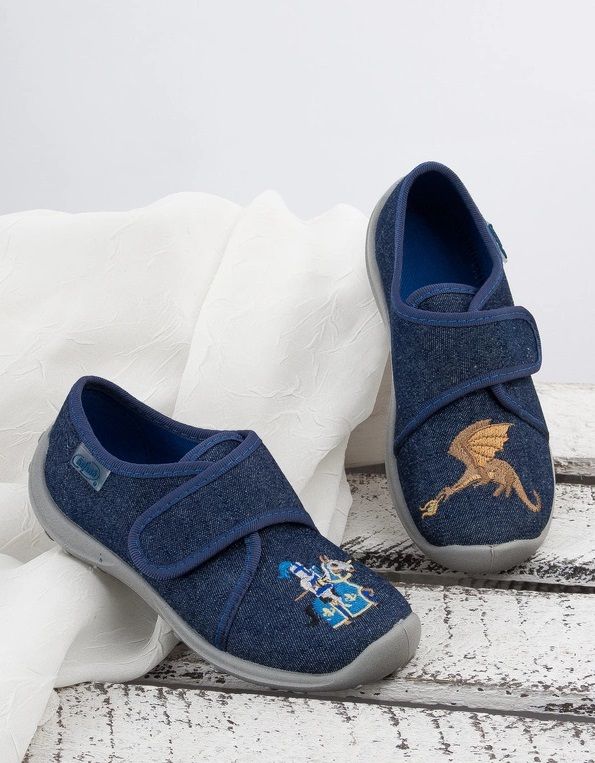 Befado Boogy 660X022 са удобни детски пантофки с мека пяна, създадени за комфорт у дома, в детската градина или на закрито. Моделът е в син цвят с принт на рицар и змей, който прави обувките любими на малките.