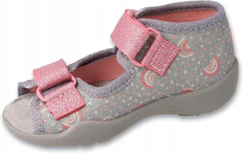 Начало Обувки Befado Papi 342P056 Бебешки сандали с кожена стелка, Сиви с розови
