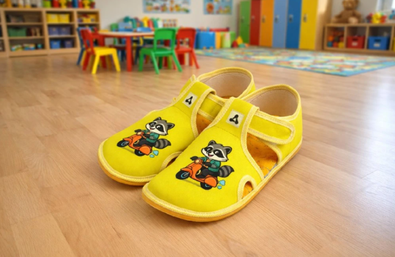Antal Rascal Raccoon Леки и гъвкави детски босоноги пантофи с широка предна част за естествено движение. Подходящи за детска градина, училище и у дома.