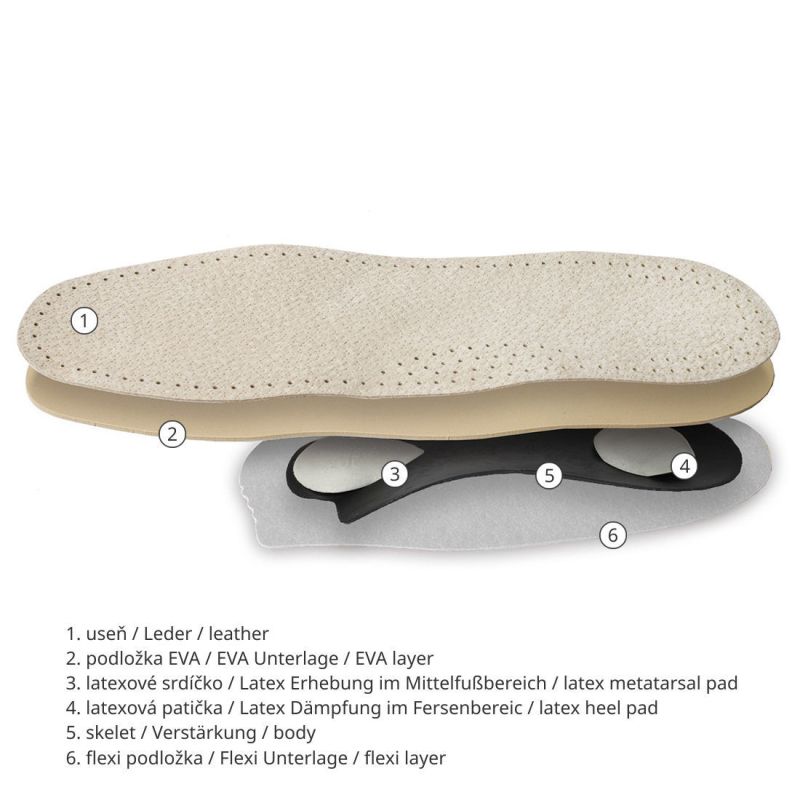 Изработени от висококачествена еластична кожа, стелките осигуряват приятно усещане и дълготрайна издръжливост. Тънкият им профил ги прави подходящи за всички видове затворени дамски и мъжки обувки, без да създават напрежение или дискомфорт.