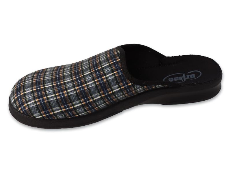 Befado Leon Полски висококачествени мъжки домашни чехли в черен цвят и ефектено пъстро каре.
