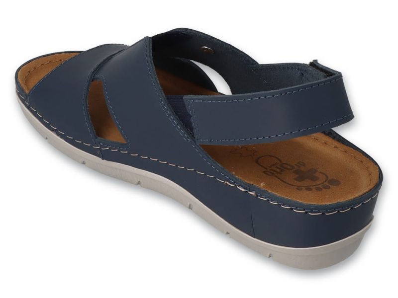Dr Orto Практични дамски антомични сандали от тъмносиня естествена кожа и с удобно закопчаване с велкро.