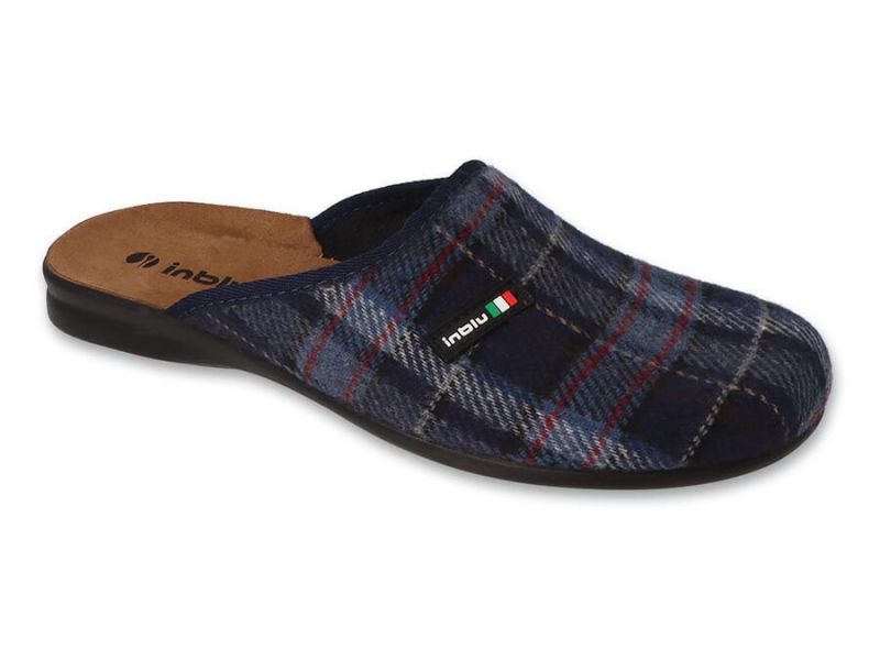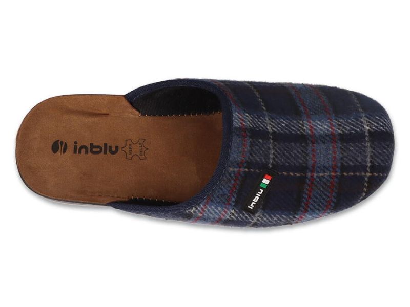 Луксозни домашни чехли с кожена стелка Inblu 155M018, Синьо каре